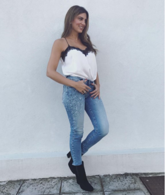 Τζιν, lingerie τοπ και ankle boots. Δείτε την εμφάνιση παρακάτω: