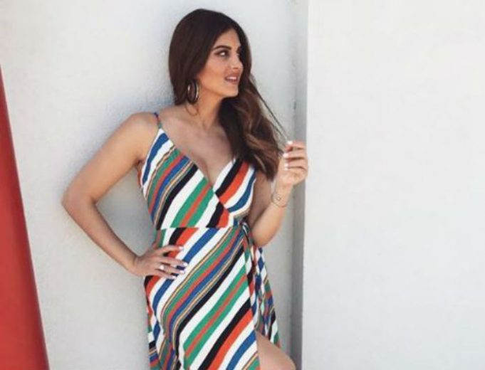 Η ίδια επέλεξε να φορέσει ένα μάξι φόρεμα με κρουαζέ κόψιμο στο ντεκολτέ και ιδιαίτερο σκίσιμο και ρίγες της εταιρείες toimoifashion, το οποίο συνδύασε με lace up πέδιλα της εταιρείας digaiaofficial και αξεσουάρ zara!